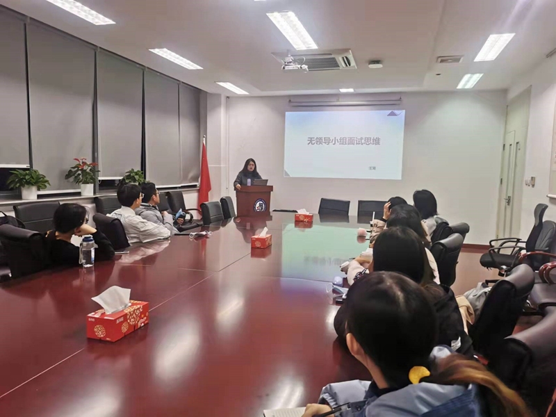 11月25日晚,最后一堂理论课程《面试直通车》由王宵老师主讲。王老师首先介绍了无领导小组讨论的特点和目的:观测面试者的组织协调能力、口头表达能力、辩论说服能力;了解面试者的自信程度、进取心、情绪稳定性、反应灵活性。之后,为大家在面试中的自我介绍提供了一些思路:如何看待自己(自我评价:我是一个怎样的人);公众如何看待你(社会评价:大家认为我怎样);团队如何评价你(团队评价:团队需要怎样的我)。最后为大家介绍了疫情期间视频面试的小技巧,包括“整理出镜形象、灵活运用灯光、避免设备干扰、选择合适背景、注意肢体语言、看着镜头说话”等。通过细致的讲解让同学们对个面和群面都有了更加深入的认知。