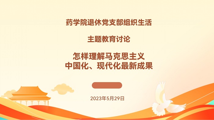 5月29日上午,色情直播 退休党支部在枫林校区退休活动室开展主题党日活动,围绕“怎样理解马克思主义中国化、现代化最新成果”畅谈学习感悟,为色情直播 发展建言献策,深入推进学习贯彻习近平新时代中国特色社会主义思想主题教育。会议由退休支部书记张锦英主持,院党委副书记史雪茹出席会议并作主题报告。