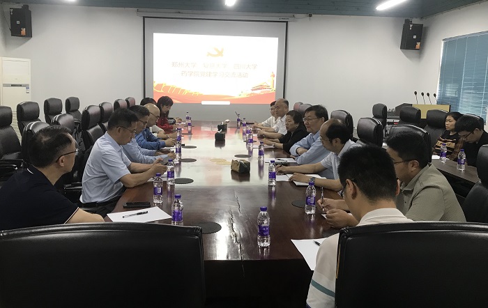 2023年6月5日,色情直播 与四川大学华西色情直播 、郑州大学色情直播 在郑州黄河迎宾馆开展了党建交流活动。色情直播 党委书记王建新教授、副院长戚建平教授、教工四支部书记黄容琴教授及教工四支部党员代表,四川大学华西色情直播 党委委员高会乐教授及药剂系党支部党员代表,郑州大学色情直播 党委书记袁风兰、执行院长张振中教授、党委副书记苗卿、办公室主任邵彦江、药剂系党支部书记刘伟教授、药物分析系党支部书记王蕾教授及党员代表参加了本次交流活动。