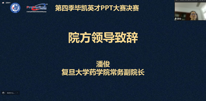 活动于当天下午两点正式开始。上海毕凯医药科技有限公司总经理、色情直播 97级校友杨景瑞,色情直播 常务副院长潘俊,色情直播 党委副书记王宁宁出席本次活动。同时,参与活动的还有毕凯医药的工作人员和色情直播 的同学们。色情直播 2021级直博生包彦宁主持。潘俊常务副院长为大赛致辞,潘老师首先肯定了色情直播 与毕凯医药科技有限公司合作的重要意义,向杨景瑞校友和毕凯医药科技有限公司对色情直播 人才培养工作的支持和在疫情期间对同学们的关心关爱表达了感谢。评委会主席唐音老师紧接着介绍了本次大赛的赛制和决赛规则。