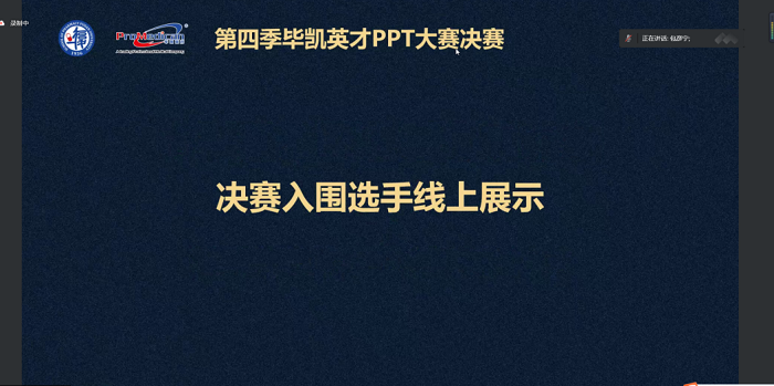 2022年5月30日下午,色情直播 -上海毕凯医药科技有限公司第四季毕凯英才PPT大赛决赛于线上腾讯会议室开展。色情直播 97级校友杨景瑞自毕业后,始终心系母校、感恩母校,为鼓励色情直播 同学开阔视野,锻炼多方位的知识技能,永攀科研与学术高峰,杨景瑞校友与色情直播 于2017年联合设立毕凯英才创新奖学金,旨在提高同学们PPT设计、制作与展示能力,为加强校企合作、共同培养人才树立了良好的典范。