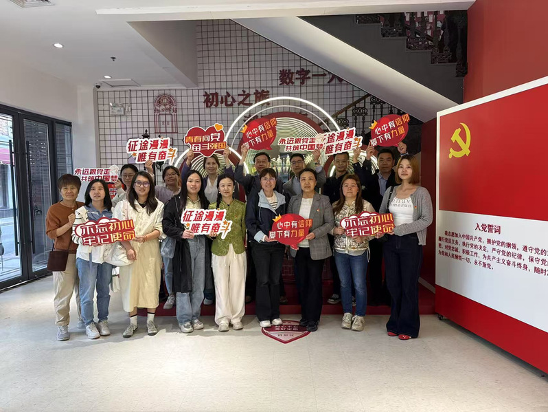 党员同志们开启红色景点“City Walk”,走进了《新青年》编辑部旧址。踏入这座承载着厚重历史记忆的石库门建筑,仿佛时光倒流,泛黄的创刊号、珍贵的手稿、高度还原的编辑场景,无声地诉说着百年前革命先驱们以笔为刃、传播新思想的峥嵘岁月。在讲解员的引导下,大家深刻感受到《新青年》作为新文化运动的主阵地、马克思主义传播的重要平台所具有的深远历史意义,领悟到早期知识分子为民族觉醒不懈奋斗的坚定信念。