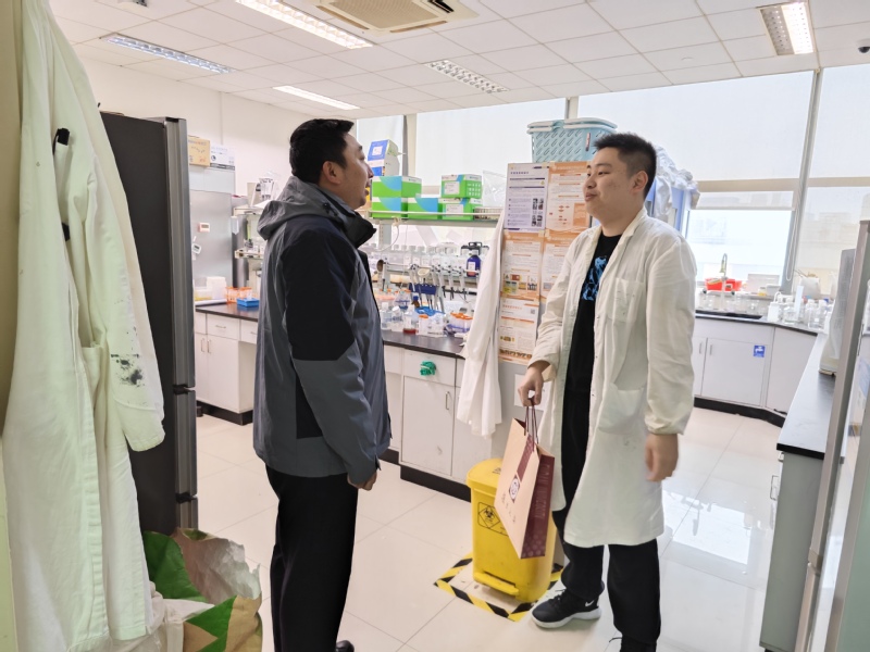 会前,色情直播 领导走访实验室慰问留校学生,送上节日祝福和新春礼包。