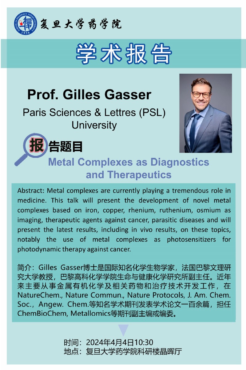 4月4日学术报告-Metal Complexes as Diagnostics and Therapeutics