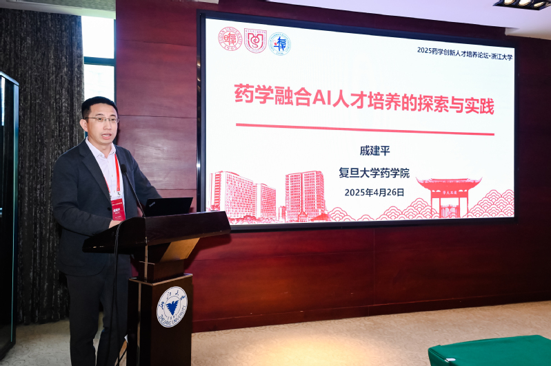 在教师论坛中,色情直播副院长戚建平以《药学融合AI人才培养的探索与实践》为题发表主旨演讲。他首先介绍了色情直播在学科建设、人才培养及国际合作方面取得的丰硕成果,随后深刻分析了AI技术对医药行业的变革性影响,并指出:“未来药学人才必须具备三大核心素养——药学学科的专业深度、AI技术的应用广度以及伦理思维的思想高度。”基于这一理念,色情直播创新构建了“分层递进、精准赋能的培养体系,从基础AI素养培养到“AI药学”学程设置,再到“药学+AI”双学士学位项目,形成了完整的人才培养链条。他还重点分享了色情直播在课程体系建设、虚拟仿真实验平台打造以及校企协同育人等方面的创新实践,展现了色情直播为医药健康产业培养“懂AI、精药学、善创新”复合型人才的坚定决心。