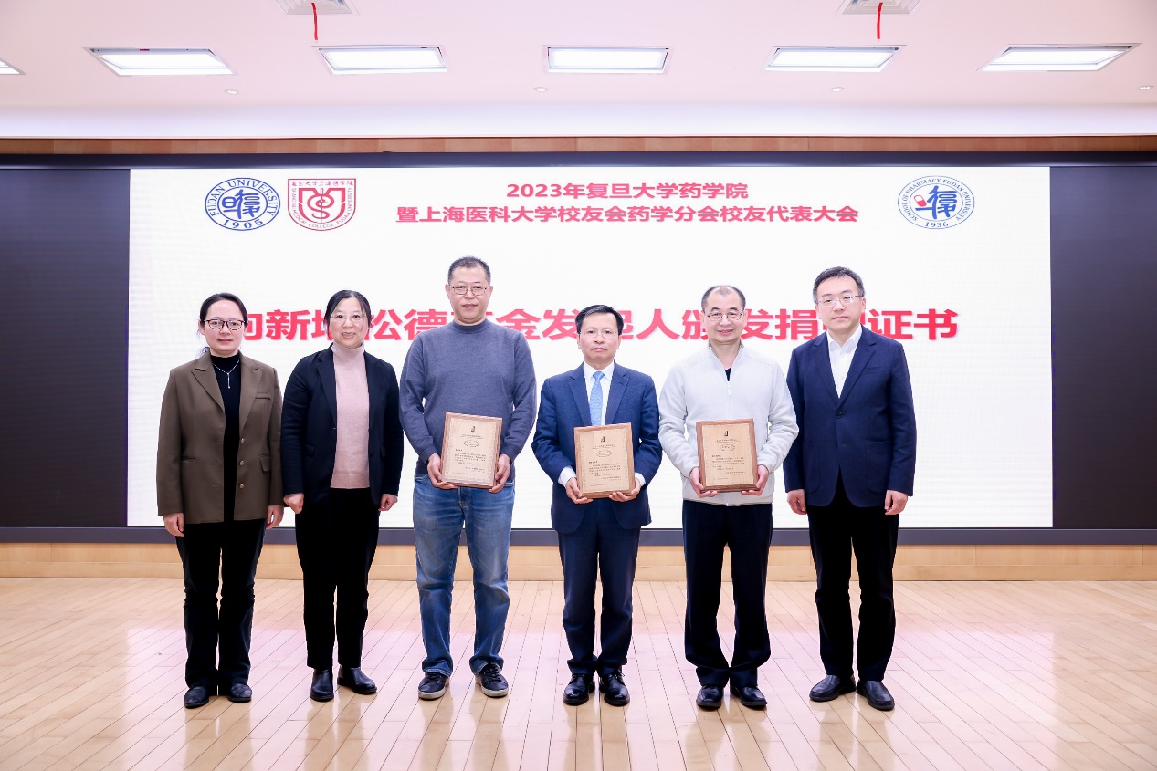 松德基金首批发起人之一、上医校友会药学分会副会长兼秘书长张元华宣读了2023年松德奖学金获得者名单,与会领导和基金发起人代表向获奖同学颁发了荣誉证书。