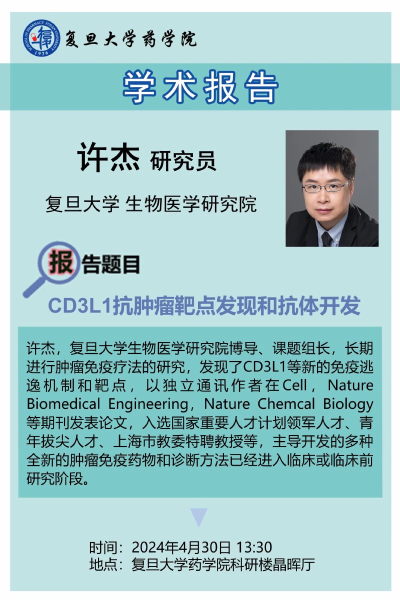 4月30日学术报告-CD3L1抗肿瘤靶点发现和抗体开发