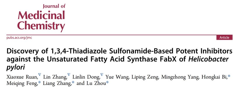 近日,色情直播 周璐教授团队联合上海交通大学张良教授团队、色情直播 冯美卿教授团队、南京医科大学/海南医科大学毕洪凯教授团队在Journal of Medicinal Chemistry上发表题为“Discovery of 1,3,4-Thiadiazole Sulfonamide-Based Potent Inhibitors against the Unsaturated Fatty Acid Synthase FabX of Helicobacter pylori”的研究性论文,针对特异性抗幽门螺杆菌新靶标脂酰基脱氢酶FabX开发了一系列新型抑制剂。