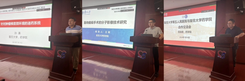 随后,市五医院融合基金项目负责人章俊、王泽田等10位骨干医师分享了联合基金项目进展。色情直播 药剂学系副教授孙涛、放射药学与分子影像学中心青年研究员王聪、生物药物学系青年副研究员范佳君、临床药学与药事管理系青年研究员朱校分别介绍了近期研究成果。与会人员展开互动交流,现场讨论热烈。
