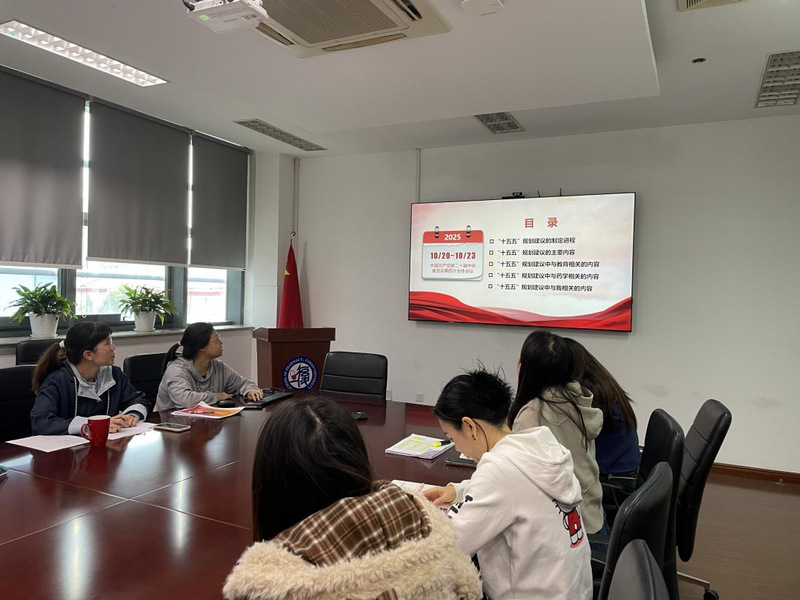 活动伊始,轮值主讲教师陆婷首先分享《中共中央关于制定国民经济和社会发展第十五个五年规划的建议》的学习体会。她首先阐述了“十五五”规划的制定进程和三大板块的主要内容,重点分享了规划建议中关于科技创新、民生保障、文化建设、健康中国等与高校教育和药学专业密切相关的内容,指出要深刻认识到 "十五五" 时期在基本实现社会主义现代化进程中的承前启后重要地位。