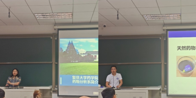 药物分析学系主任李嫣以奥运会兴奋剂检测等热点问题引入药物分析学,介绍了学生动态和毕业生去向等等;天然药物学系副主任程志红介绍了系里每位老师及其研究方向,详尽而又细致地将天然药物学大致研究内容及其兴趣点生动呈现在同学们面前。