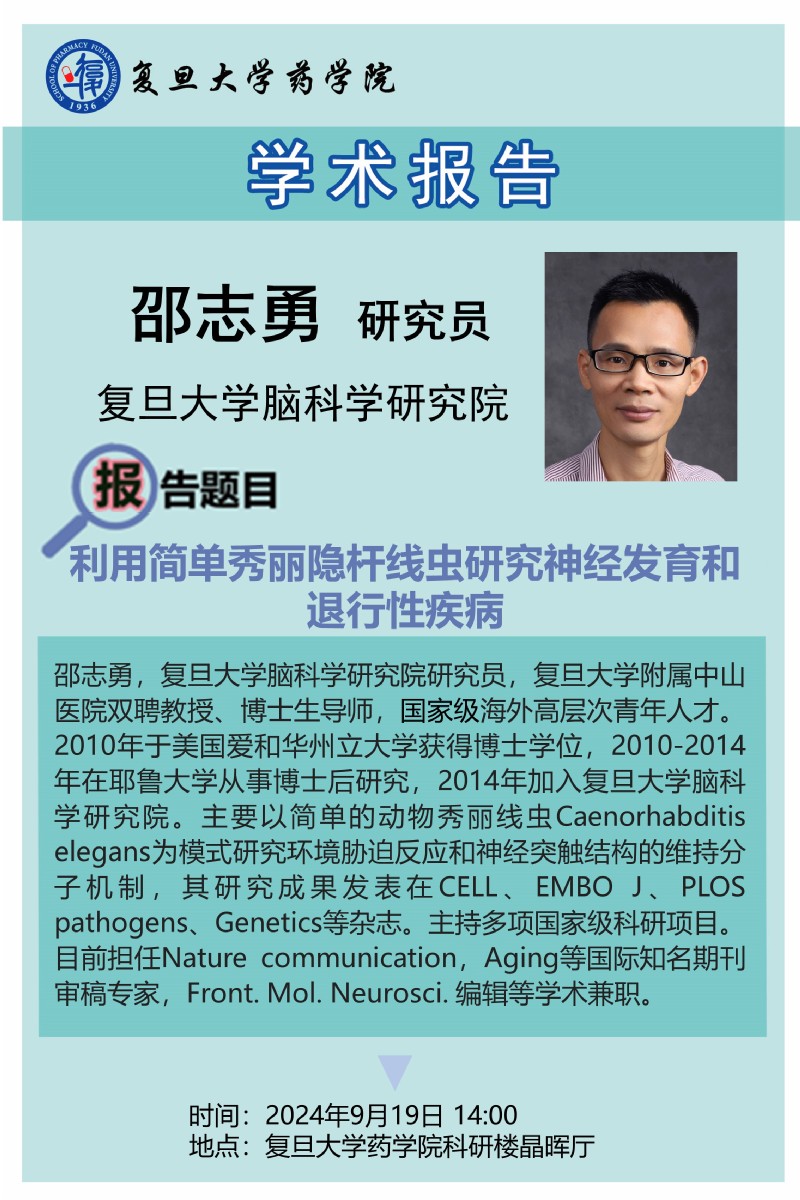 9月19日学术报告-利用简单秀丽隐杆线虫研究神经发育和退行性疾病