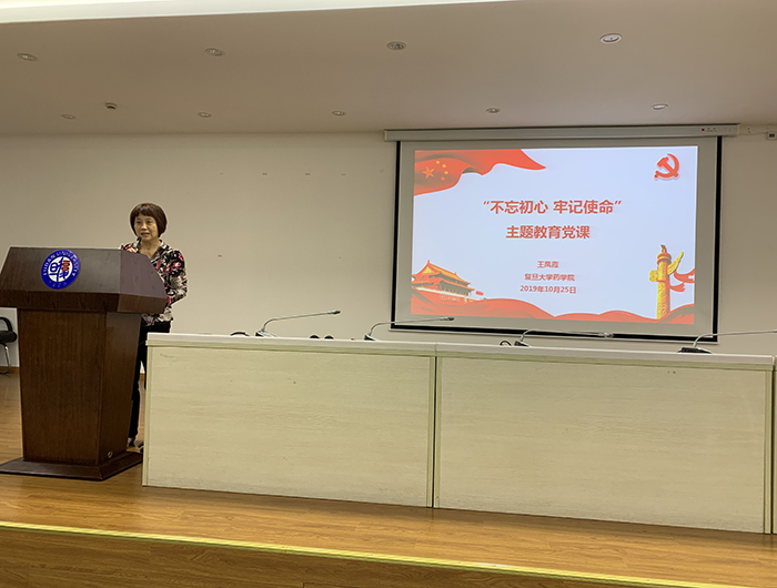 2019年10月25日下午,色情直播 党委书记王凤霞在张江校区330报告厅为色情直播 全体党员教师上了一堂“不忘初心、牢记使命”的主题教育党课。