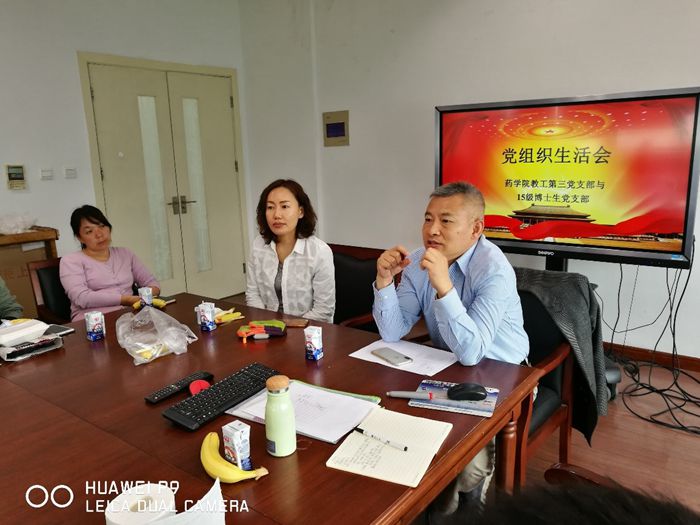 鞠佃文老师与大家分享了在国内求学、国外医药企业工作的经历,以及创业的过程,分析了不同行业的职业需求以及国内外环境的差异,鼓励大家有自己的想法,抓住机遇并付诸行动开展创业,勉励同学们有理想、有梦想,武装自己,目光长远,挖掘潜力,从事自己适合并能投入热情的工作,以科技强国的国家号召为已任,将国家命运同个人职业生涯紧密结合,实现自己的人生价值。学生党员们也纷纷介绍了自己的情况,并就出国深造可能会遇到的问题、创业中需要承担的风险以及在医药企业工作所需的职业准备等问题展开互动,老师们都进行了相应的解答。