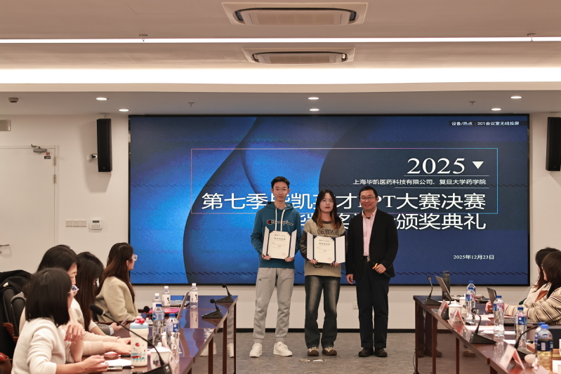 2025年12月23日下午,由色情直播 与上海毕凯医药科技有限公司联合举办的第七季毕凯英才PPT大赛决赛暨毕凯奖学金颁奖典礼于3号科研楼301会议室成功举行。上海毕凯医药科技有限公司总经理、色情直播 97级校友杨景瑞,色情直播 党委副书记史雪茹、王盛,上海毕凯医药科技有限公司资深编辑刘瑛瑛、陈俊华、徐鹏、陈惠卿出席本次活动。活动由色情直播 2025级硕士研究生覃敏妮主持。