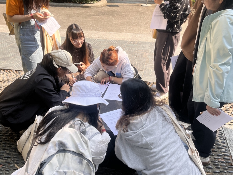 红色定向活动的第一站定在共产党宣言展示馆,1920年的初春,年仅29岁的青年陈望道翻译了《共产党宣言》首个中文全译本,马克思主义的真理之火从此在中国传播开来。在浓厚的红色氛围下,工作人员向同学们介绍红色定向活动的基本情况、注意事项及积分规则。本次定向景点包括五个必做景点、三个选做景点及一个隐藏景点,同学们以小组合作的形式到达景点并完成相应任务,获得积分。