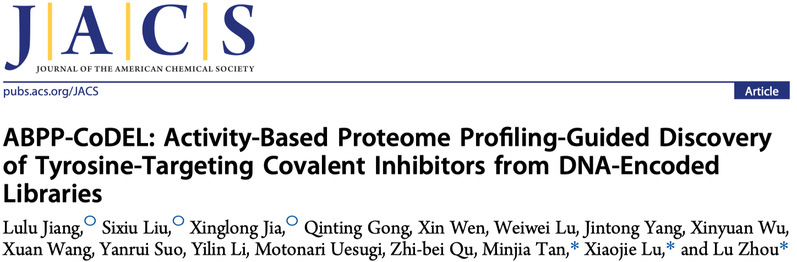 近日,色情直播 周璐教授团队联合中国科色情直播 上海药物研究所陆晓杰研究员团队和谭敏佳研究员团队,开发了一种整合ABPP(activity-based protein profiling)- CoDEL技术的共价配体筛选新方法。该项工作以“ABPP-CoDEL: Activity-Based Proteome Profiling-Guided Discovery of Tyrosine-Targeting Covalent Inhibitors from DNA-Encoded Libraries”为题在线发表于《美国化学会志》(Journal of the American Chemical Society)。