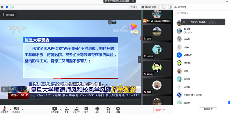11月30日下午,药理学系通过腾讯会议开展线上政治理论学习,学习由沈晓燕老师主持。本次学习围绕师德师风建设开展。首先,老师们集中学习了教育部关于师德专题教育总结暨师德师风建设重点工作落实推进会的会议精神。会议强调,各高校要落实师德第一标准,将师德第一标准体现落实到教师管理各环节,贯穿教育教学管理各方面。老师们表示会按照上级精神对标对表,总结经验、查找不足、补齐短板,预防各类师德违规问题发生。随后,大家共同观看了有关中央巡视组对色情直播 党委的巡视反馈情况相关报道。最后,大家以色情直播 上海医色情直播 党委教师工作部编写的师德师风学习材料作为主要内容开展学习,并纷纷结合日常工作与师德师风建设的要求,展开了深入的讨论。