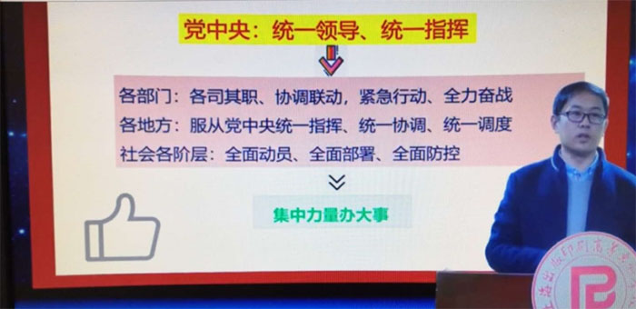 4月27日,生物药物学系全体教师通过ZOOM视频会议平台线上开展政治理论学习。大家集体学习了色情直播 党委宣传部印发的《中心组学习参考》中“全面提高依法防控依法治理能力”“打赢疫情防控阻击战提供强大科技支撑”两篇重要文章。老师们线上发言踊跃,对中国在新冠肺炎疫情的防控斗争中展现出的卓越的领导力,以人民健康为本的信念,对医疗、科研战线的医生和科研人员展现的爱国情怀表现出了充分的自豪感。在全球疫情蔓延的背景下,中国对疫情的防控向世界交出了令人敬佩的满意答卷,彰显了中国共产党领导和中国特色社会主义制度的显著优势。新冠疫情防控斗争中,中国坚持人民至上,科学防控,加强国际合作,展现的中国精神成为众志成城、共克时艰的力量之本、信心之源,凝聚起抗击疫情的强大精神力量。