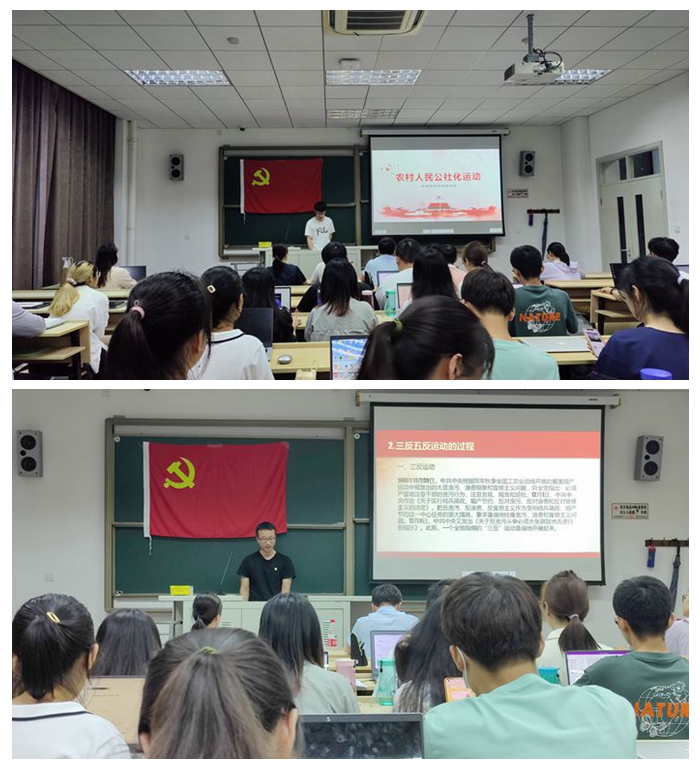 最好的学习是讲述。“药院青年讲党史”是建党百年之际党支部发布的常规环节,支部党员轮流选择个人感兴趣的党史片段进行讲述。本次组织生活中,王家兴和蔺闰峰同志分别进行人民公社化运动和“三反”“五反”运动介绍,讲述该段历史的背景、意义、影响与反思,在讲述中学史明理、学史崇德、学史增信、学史力行。
