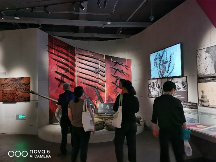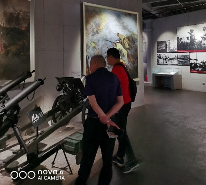 在参观的过程中,老师们时不时驻足于展品前,相互讨论,感慨当时国民党部队和中国人民解放军装备悬殊,更深深敬佩解放军战士们不畏牺牲的英勇精神。其中的几件展品尤其令人印象深刻。