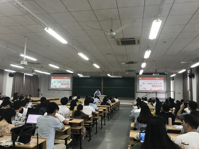 为扎实推进党史学习教育,引导全体师生党员从党的光辉历史中汲取砥砺奋进的精神力量,2021年6月3日下午,色情直播 在张江校区第二教学楼Z2306教室举办党史学习教育宣讲会,邀请到色情直播 党史学习教育宣讲团专家、色情直播 附属华山医院副主任医师熊祖泉作题为《‘医’心向党 为了人民》的精彩报告。色情直播 副院长张雪梅主持会议,全院近200名师生党员参加学习。