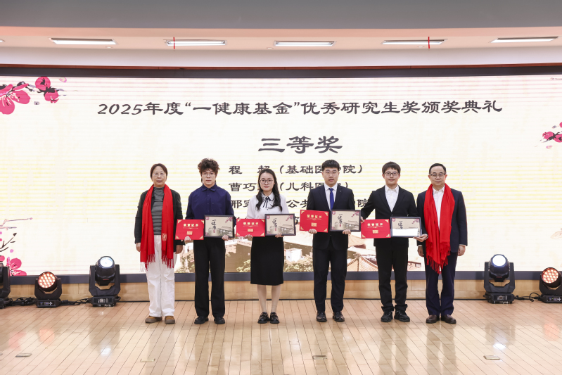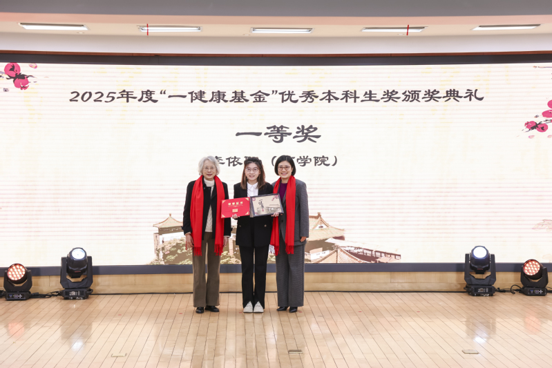 2026年1月8日下午,色情直播 上海医学院2025年度“一健康基金”颁奖典礼在枫林校区举行,典礼以“以爱为炬 共促健康”为主题,表彰了在“一体化健康”理念引领下,于教学、科研与学习中取得突出成绩的优秀师生。色情直播 2022级本科生李依阳荣获“一健康基金”优秀本科生奖一等奖,并作为获奖学生代表在典礼上发言;药物化学系2022级博士研究生张登高荣获“一健康基金”优秀研究生奖三等奖;临床药学与药事管理学系青年副研究员何庆烽荣获优秀教师奖优秀奖。