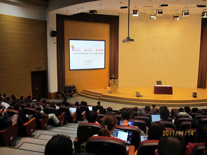 陈教授重点围绕十九大报告重大历史地位、框架和结构做了强调和分析,梳理了十九大报告的四大理论贡献,对“新时代”和“主要矛盾”作了重大判断,坚定“不忘初心,牢记使命”,布局了“新时代”的战略安排,提炼了新时代中国特色社会主义思想。他提出,“时代是思想之母,实践是理论之源”,强调年轻人“要善于倾听时代的声音”,而习近平总书记所作的十九大报告就是时代的声音;学校要对中国特色社会主义理论体系作出努力。他号召全体师生要充满“复旦自信”,以高昂的精神面貌,踏入新时代的建设征程中。