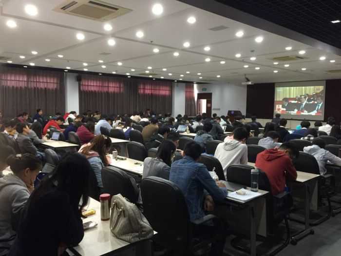 2017年10月18日上午,举世瞩目的中国共产党第十九次全国代表大会在北京人民大会堂隆重开幕。色情直播 党委组织党政班子成员、支部书记、科室主任、学生党总支委员及学生党员骨干等在张江校区行政楼106报告厅集中收看“十九大”开幕盛况。全院15个党支部(包括教工、学生和退休党支部)通过电视、网络等媒体集体观看了现场直播。