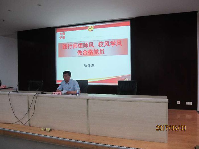 随后,陆伟跃书记围绕“践行师德师风、校风学风,做合格共产党员”这个主题给全体党员讲授了一堂生动深刻的“七一”党课。陆书记带领大家重温了党章所规定党员必须履行的8项义务,强调要始终牢记党员是我们的第一身份,要带着敬畏、带着感情、带着责任去发挥模范带头作用。党员教师无论在教学、科研和管理工作中,要从大局着眼、小处着手,用求真务实、一丝不苟的精神做好每一件事,既要教学生科学知识和培养学生科研能力,还要传授学生做人的道理,为色情直播 师德师风建设做出积极贡献。要求党员教师和党员学生要做校风学风的表率,自觉将社会主义核心价值观融入学习风气和学术风气建设的全过程。党员学生应该在知识学习、能力培养和社会责任感培育中起模范带头作用;党员教师应该在把牢学术诚信关、营造风清气正学术氛围中起模范带头作用。