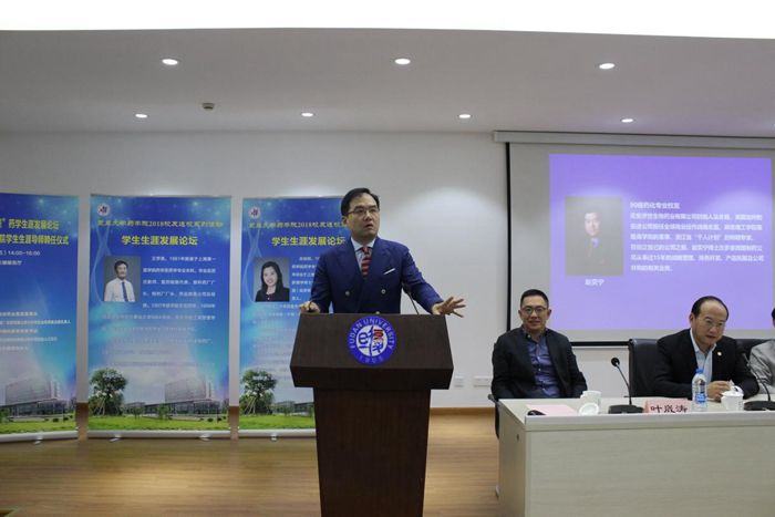 聘任仪式后,五位导师分别围绕企业对药学人才的期望和培养、药学生的创新与坚持等话题做了精彩发言并与在场学生互动交流。其中,81级校友、延安药业集团董事长王学亮提到了两种人才——专业型人才和复合型人才,并就如何成为一名复合型人才发表了自己的见解;85级校友、BI(中国)投资有限公司质量合规负责人孙桂明分享了在职业生涯甚至在人生道路上所需要具备的三种能力---团队协作能力、学习能力以及责任心;“跨界需要勇气和决断,跨界的人生也一样精彩。”88级药理专业毕业现在从事管理工作的上海市胸科医院党委书记郑宁说:“无论是跨界还是坚守本行,都要做好自己的本职工作。”致力于生物医药领域的90级校友、奕安济世生物药业创始人赵奕宁提到自己的梦想就是无论耗费几年还是几十年,他希望他和他的团队研制的药物能够经过临床实验真正用到病人身上,解除病痛。他提出了“闯和创”,敢闯以及创新,为色情直播 的学弟学妹们今后的生涯道路发展提供了宝贵的意见;91级校友、醴泽资本管理合伙人叶崴涛围绕“理想、行动、坚持”讲述了他从毕业初的彷徨到逐步看清自己的方向,一直走到现在的人生经历。他说,“理想就是火焰,我们要做的就是始终保有心中的火焰,生生不息”。