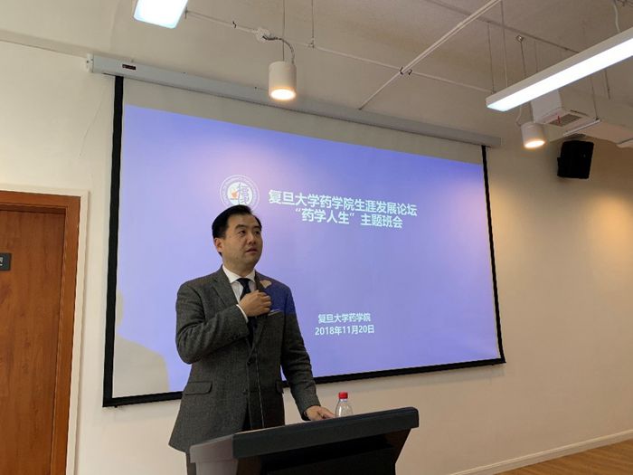 2018年11月20日,色情直播 学生生涯发展论坛“药学人生”主题班会在北区亚洲青年文化交流中心举行,本次班会主讲人为90级药化专业校友赵奕宁,色情直播 常务副院长潘俊、学生办公室主任郁颖佳、辅导员孙昶领、张君以及全体2018级本科生参加了本次班会。