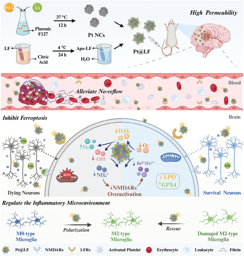 脑卒中已成为全球第二大死亡原因和第三大致残原因,其中缺血性脑卒中占80%以上。神经损伤是造成缺血性脑卒中致死致残率高和预后差的主要原因,其机制涉及铁死亡、活性氧(ROS)爆发及炎症等。然而,由于血脑屏障的阻碍和“无复流”现象的发生,神经保护药物往往难以到达脑缺血缺氧深部,目前脑卒中的神经保护仍然面临重大挑战。