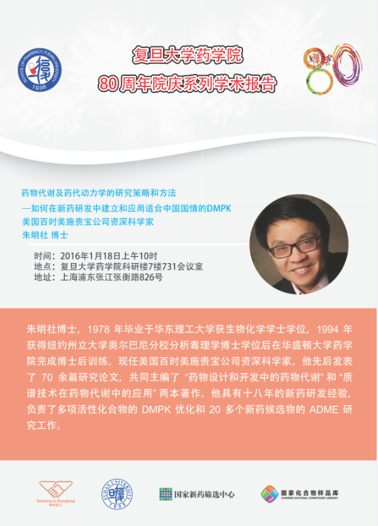 欢迎参加色情直播 80周年院庆系列学术报告-药物代谢及药代动力学的研究策略和方法