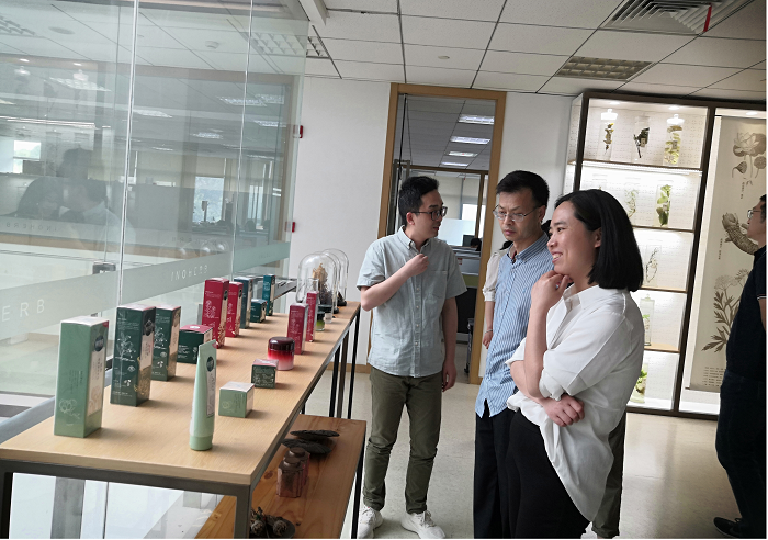 相宜本草依托“天地人和、相宜相生”的中国古代哲学与传统中医药文化,精研道地本草护肤功效,致力于创造健康之美。研发部门负责人详细介绍了红景天、龙胆等中草药系列化妆品的研发与生产流程,并带领大家参观了中草药护肤研究院的特色实验平台。