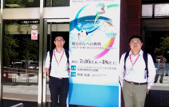 2015年7月16日至18日,日本肿瘤内科学会第13届年会(13th Annual Meeting of the Japanese Society of Medical Oncology)在日本札幌召开,大会主题为“Fight against Deadly Cancer -Collaborations among Science,Cancer Care and Society”,本教研室博士生范佳君、李玉彬因肿瘤治疗领域的相关研究成果获得大会资助参加本次会议。会议期间,范佳君、李玉彬分别展示了关于非小细胞肺癌、慢性髓性白血病治疗的研究成果,并借此机会深入了解肿瘤治疗领域的研究前沿及科学难题,获益匪浅。