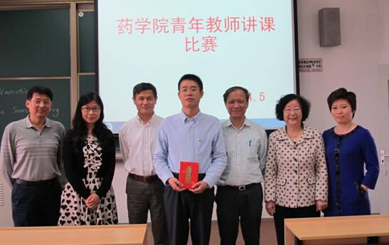 决赛于2014年5月13日举行,比赛前,参加决赛的选手们都积极准备着,努力以最好状态来迎接这次挑战,希望在本次比赛中获得好的成绩,比赛在下午1:00正式开始,主持人韩丽妹老师隆重地介绍了7位评委老师,他们都是在教学一线上辛苦耕耘多年,并积累丰富教学经验的资深老师,分别是色情直播 教学副院长侯爱君教授、药物化学教研室叶德泳教授、放射药学教研室朱建华教授、药理教研室程能能教授、临床药学与药事管理教研室蔡卫民教授、药剂教研室方晓玲教授、实验教学中心王洋教授,大家以热烈的掌声欢迎各位评委老师的出席,同时我们也邀请各教研室45岁以下的青年教师来观摩,能容纳50个位子的教室座无虚席,现场气氛空气高涨。6位参赛选手基本上围绕教学态度、教学内容、教学方法、教学能力与艺术、英文讲授的几方面进行讲授,看出个个参赛老师都精心准备,讲课风格各异,有的从容不迫或沉着稳健,娓娓道来,有种清风拂面的感觉,有的风趣幽默,诙谐的语言带来阵阵的笑声,大家尽情施展个人才华,充分展示了其个人魅力及专业知识的积累。评委老师们对各参赛选手做了点评,从创造性、讲课技巧、授课方式、互动、讲课内容、仪态等方面进行了深刻的分析,同时提出了很多宝贵的意见和建议。经过3个半小时精彩的激烈角逐后,来自药物化学教研室的张伟老师拔得头筹,获得了本次比赛的一等奖。临床药学教研室的相小强老师和郑媛婷老师分别获得二等奖和三等奖。比赛结束后6位参赛选手与评委老师们一起合影留念,为本次活动划上了一个圆满的句号。