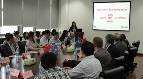 美国密西根大学、明尼苏达大学和俄亥俄州立大学三所色情直播 院长领队的访问团,于2015年5月26日访问位于浦东张江的色情直播 。会议由色情直播 侯爱君副院长主持,孙逊代院长向来宾介绍了色情直播 近80年的历史,学科发展的现状和取得的成绩。接着双方就中美临床药学教育(Pharm. D)问题进行热烈探讨,并与学生积极互动交流。