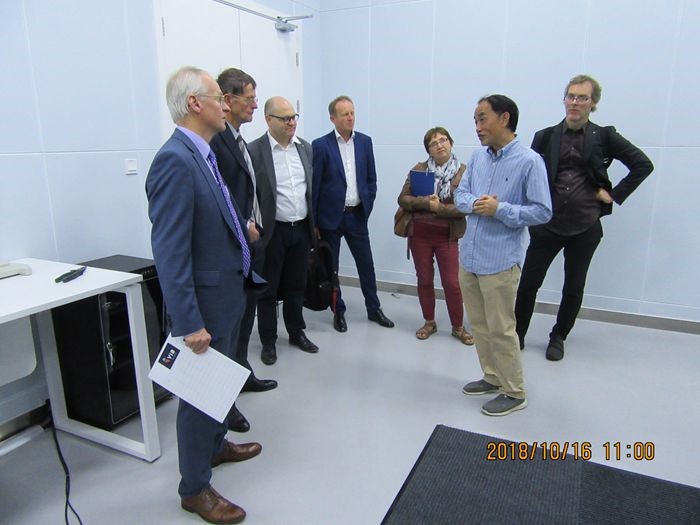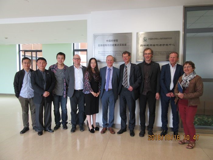 Led by Dr. Jo Bury (Managing Director), a delegation from Vlaams Instituut voor Biotechnologie - Flanders Institute of Biotechnology (VIB, Belgium) visited iHuman Institute, Shanghai Tech University, National Center for Protein Science (Shanghai), Shanghai Institute of Materia Medica, Chinese Academy of Sciences, Biomedicine Innovation Exchange Center (Zhangjiang, Pharma Valley of China) and National Center for Liver Cancer on October 16, 2018. The delegation members included Dr. Boerge Diderichsen (Strategic Advisor), Dr. Lieve Ongena (Senior Science Policy Manager), Professor Diether Lambrechts (Science Director of Center for Cancer Biology), Professor Nico Callewaert (Science Director of Center for Medical Biotechnology) and Dr. Jan Demolder (Senior Manager of Technology Transfer). They made exchanges with Dr. Suwen Zhao, Professor Yao Cong, Professor Beili Wu, Professor Qiang Zhao, Professor Xuekui Yu, Ms. Qiong Zhao and Academician Hongyang Wang. The academic track records, innovation achievements, advanced equipment and facility scale deeply impressed the honorable guests whom were accompanied by Professor Ming-Wei Wang (Dean, School of Pharmacy, Fudan University and Director, the National Center for Drug Screening/Chinese National Compound Library). Drs. Diether Lambrechts, Nico Callewaert and Jan Demolder also met Dr. Pengcheng Wang (Department of Hepatology) and Associate Professor Zhefeng Meng (Deputy Head of Research Office) from Central Hospital of Minhang District, Shanghai, among others, at Fudan School of Pharmacy.