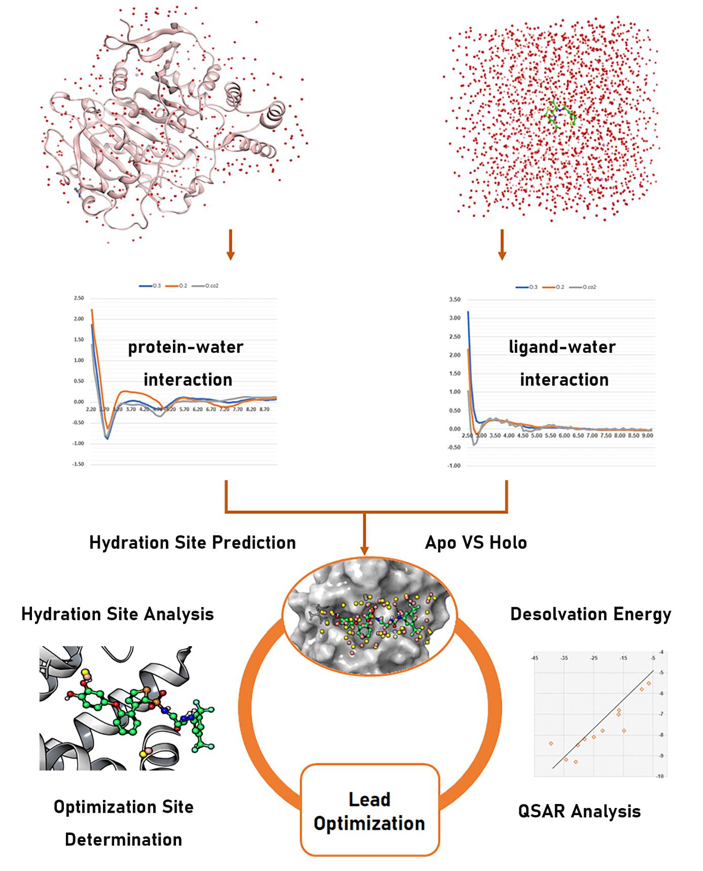 In this study, molecular dynamics simulations were employed to create solvation models for nearly 10,000 organic small molecules. These models served as the basis for deriving statistical potentials to assess interactions between ligands and water molecules. Simultaneously, statistical potentials for evaluating protein-water interactions were refined using a comprehensive dataset of 17,042 non-redundant protein crystal structures from the PDB (as of the 2020 version).