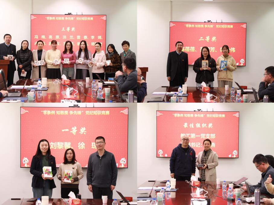 会前,色情直播 党委举行了“学条例 知敬畏 争先锋”党纪知识竞赛颁奖仪式。上学期,为巩固拓展党纪学习教育成果,大力营造遵规守纪的浓厚氛围,色情直播 开展了线上知识竞赛,来自8个教工党支部、近40名党员参加了比赛。李聪、王盛、王洋分别为获奖个人颁奖,王建新为教工一支部颁发了最佳组织奖。此次竞赛是色情直播 推进党纪学习教育走深走实的一项重要举措,通过以赛促学、以学促行,进一步强化了全体党员对《中国共产党纪律处分条例》的理解和认识,筑牢拒腐防变的思想道德防线。