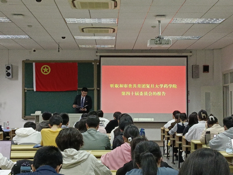 王翰麒代表共青团色情直播 第四十届委员会向大会作题为《紧跟党走,牢记嘱托,团结带领药学青年人在新时代书写实干篇章》的工作报告。报告从团学团建、校园文化、学术科研、志愿服务等角度向全体与会代表介绍上一届团委工作情况,同时剖析了不足,最后他勉励广大团员青年以专业所长回应国家需求和社会需求,努力成长为堪当民族复兴重任的时代新人。