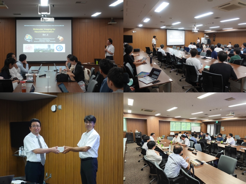 在专题讲座环节中,季斌教授做了题为“神经炎症的分子影像”的专题报告,探讨了小胶质细胞在神经系统疾病中的作用,并介绍了目前神经炎症成像领域的最新进展和挑战。最后,双方高度评价了本次研讨会的成果,互赠纪念品,并展望了未来两校在药学研究领域的进一步合作。