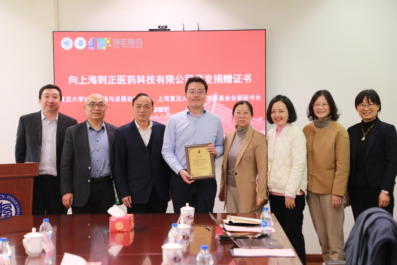 随后,章晓野向上海则正医药科技有限公司颁发捐赠证书。