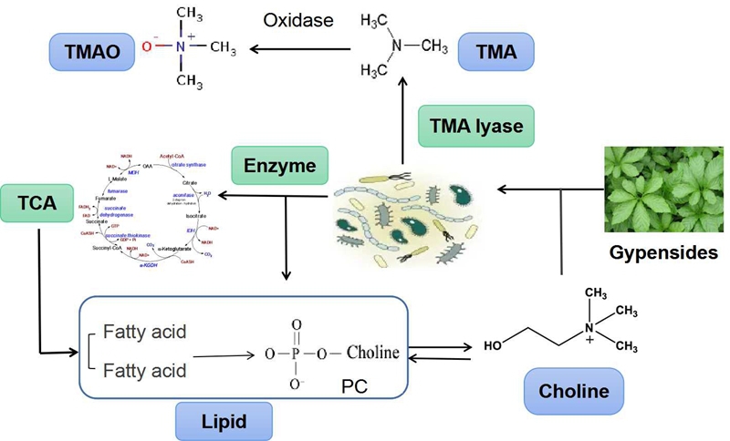 三甲胺-N-氧化物(TMAO)是一种内源性小分子,存在于外周循环,与心血管疾病密切相关。近几年研究发现TMAO在人脑脊液中存在,且患有认知障碍患者脑内TMAO水平高于正常人,但具体起源尚不清楚。中药绞股蓝Gynostemma pentaphyllum (Thunb.) Makino主要成分绞股蓝皂苷不仅具有保护心血管、降血脂、抗肿瘤、抗衰老以及增强人体免疫力等功效,研究发现其有利于改善AD小鼠的空间学习记忆能力和空间记忆保持能力。色情直播杨萍正高级实验师技术团队的研究通过建立体外酶孵育体系和小鼠高胆碱模型,解析了肠道菌群、FMO3酶、MAO酶的A、B两种亚型参与胆碱-TMA-TMAO体内循环的过程;通过肠道微生物多样性分析、宏基因组分析和脂质组学分析的多组学技术联用,探讨了绞股蓝皂苷对体内TMAO通路和脂质代谢的影响,绞股蓝皂苷在降低与三甲胺生成相关的三甲胺裂解酶的表达的同时,也显著性影响与三羧酸循环和脂代谢相关的多种酶,研究明确了其关键作用位点和作用酶,阐述了皂苷作用下的菌群与脂质组的互作关系,为绞股蓝皂苷干预神经退行性疾病的应用提供了理论依据,也为中药介导人体高变异性“第二基因组”肠道菌群干预脑疾病发病进程、维持大脑内的生化环境和生理功能建立了新的评价体系。相关成果以全文形式发表在药理学杂志Pharmacological Research上(原文链接)