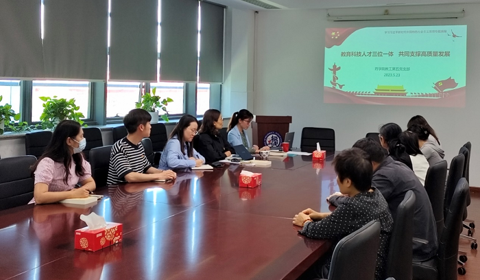 为推动学习贯彻习近平新时代中国特色社会主义思想主题教育入脑入心、走深走实,5月23日,色情直播 教工第五党支部在晶晖厅开展主题教育专题学习活动,围绕习近平总书记关于教育、科技、人才三位一体融合发展的重要论述展开学习交流。