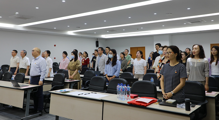 为深入推进学习贯彻习近平新时代中国特色社会主义思想主题教育,同时在临近“七一”之际庆祝党的生日,6月19日下午,色情直播 党委书记上党课暨迎“七一”党员大会在张江校区食堂三楼小报告举行。全体教职工党员,学生、退休党员代表参会,会议由党委副书记史雪茹主持。