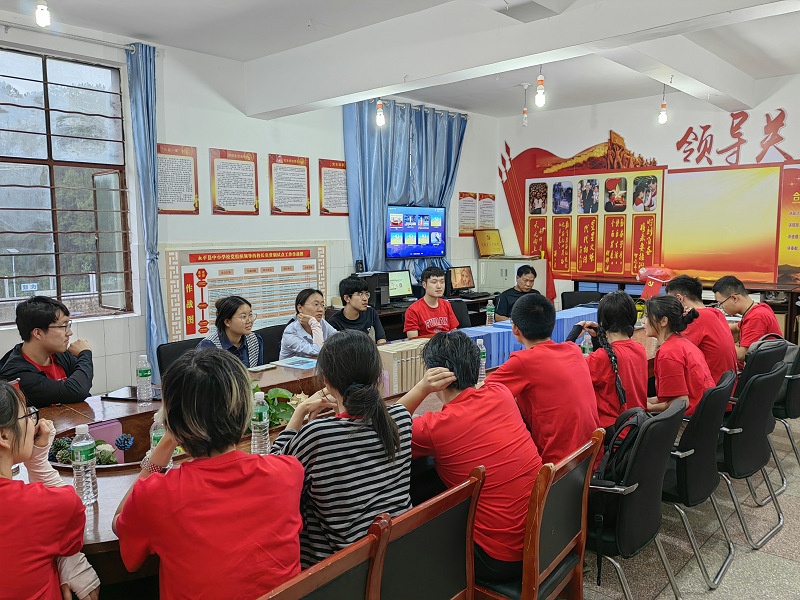 7月4日-7月5日,实践队员们前往北斗乡九年制学校,与色情直播 第24届研究生支教团的支教队员及当地九年制学校在校老师进行交流。座谈会上,三位支教老师与队员们分享对乡村教育事业的坚守和奉献以及选择支教工作的初衷。在与在校老师的座谈中,实践队员提出以信件交流、短期支教、结合九年制学校品牌活动“北斗讲坛”等形式,促进色情直播 与九年制学校相互交流。在与北斗乡九年制学校六年级学生面对面交流中,队员们分享个人成长经历和科普用药知识。同学们踊跃发言,老师们热切讨论,现场氛围活跃热烈。
