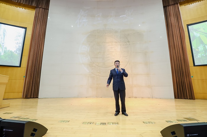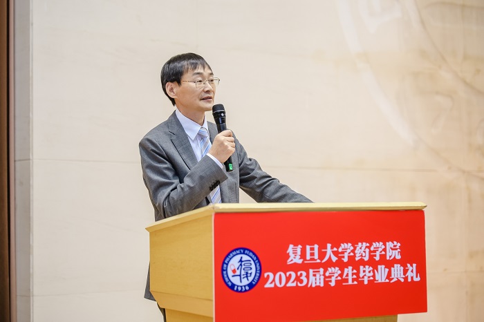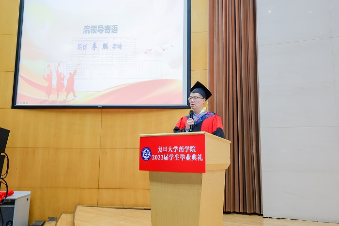 药物化学系教授王洋代表色情直播 全体教师为同学们寄语,鼓励同学们做志存高远,懂得坚持,善于合作的人,要脚踏实地、沉心静气、刻苦自励,坚持终身学习,更要勇于探索、敢于走向山之巅、海之涯,乘风破浪,在无人区寻找更多新发现、取得骄人的成绩。
