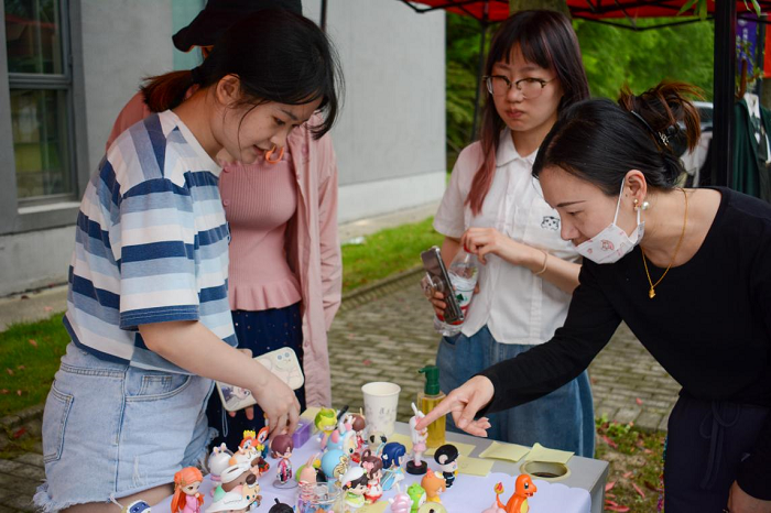 除固定摊位外,此次游园会还设有“歌舞燃夏”小舞台,来自Demo合唱团的成员在每个半点倾情献唱《奇妙能力歌》《喜欢你》《年少有为》《盛夏》等歌曲,现场参与毕业游园的同学也积极报名歌曲演唱,为师生们呈现了一场听觉盛宴。六个“承旧他意”跳蚤市场摊位前人头攒动,摊主们独家收藏的布偶、学霸笔记、笔记本、书本等吸引了一波又一波师生驻足选购。浦东新区高校所设摊反诈骗宣传,用一个个身边的实际案例为师生们敲响警钟。